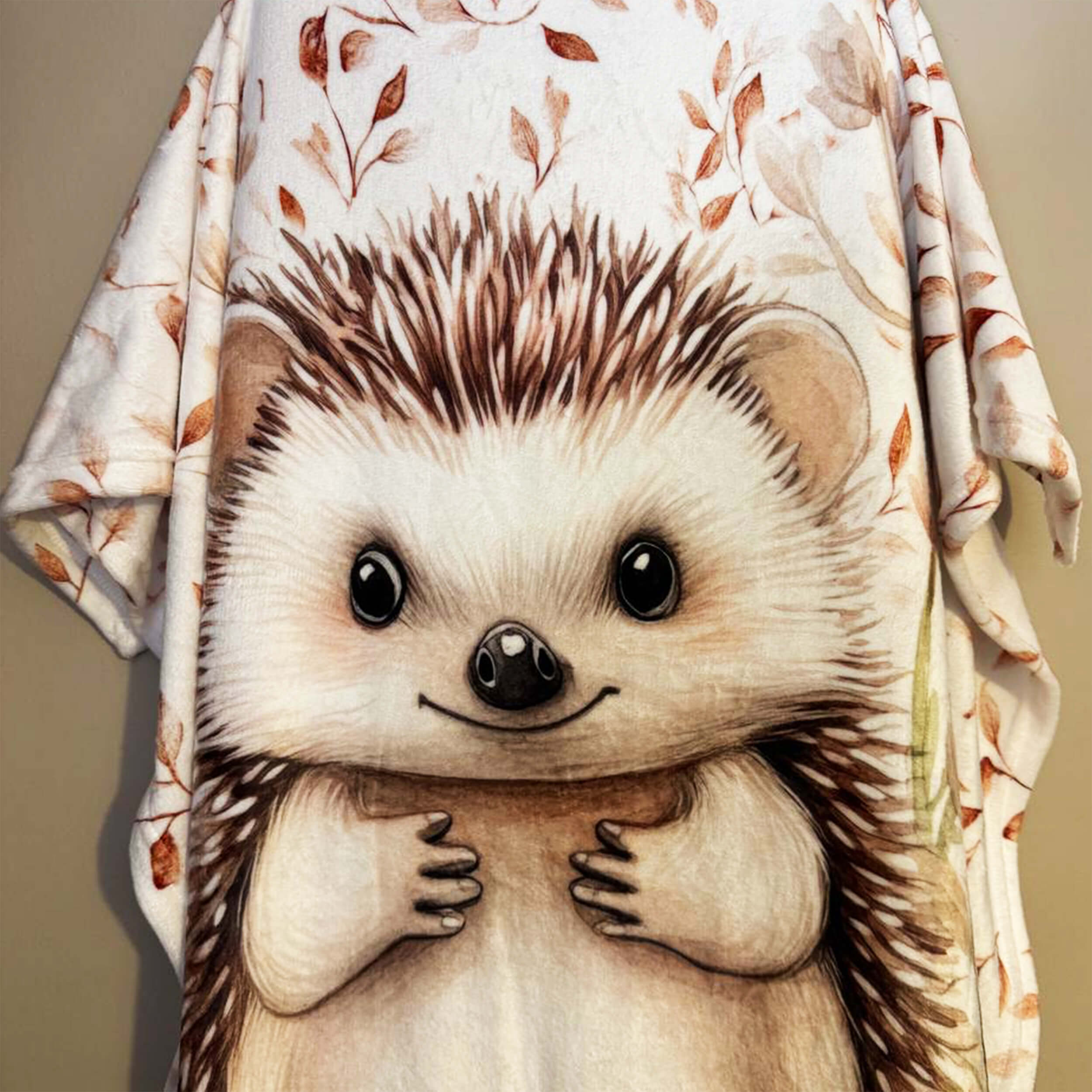 Cuddle up with our Hedgehog Haven Fleece Blanket! Featuring charming hedgehogs nestled among soft, natural tones, this ultra-soft fleece brings warmth and comfort to every cozy moment - perfect for naps, bedtime or snuggling on the couch.