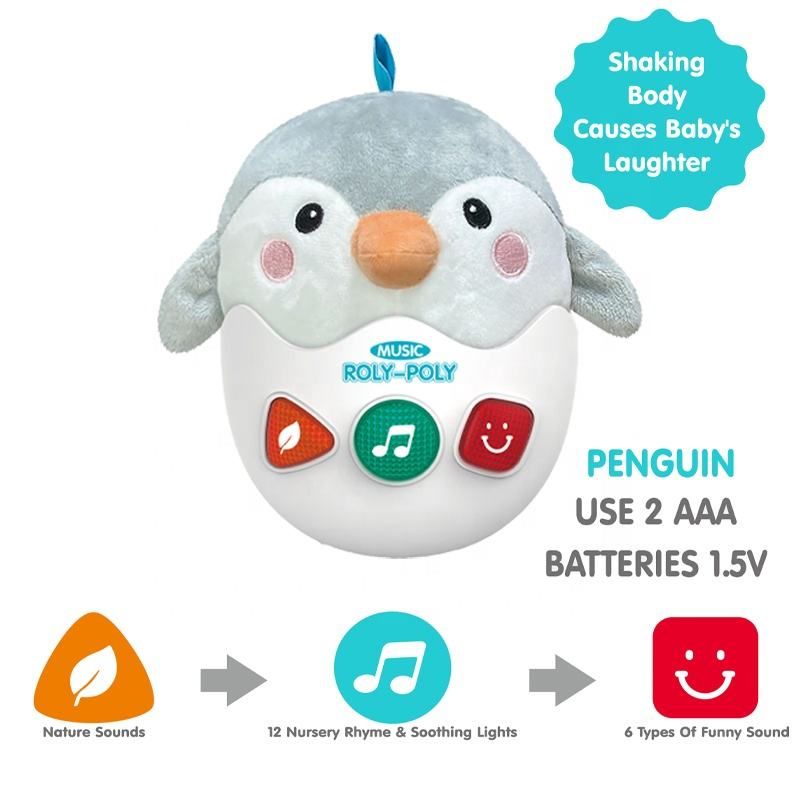 Bring joy and learning to your little one with the Interactive Musical Penguin Plush Toy! This adorable tumbler-style plush combines cuddly softness with interactive features, including soothing music, gentle swinging motions, and engaging sounds. Perfect for early childhood development, this educational toy promotes sensory exploration and keeps babies entertained for hours.