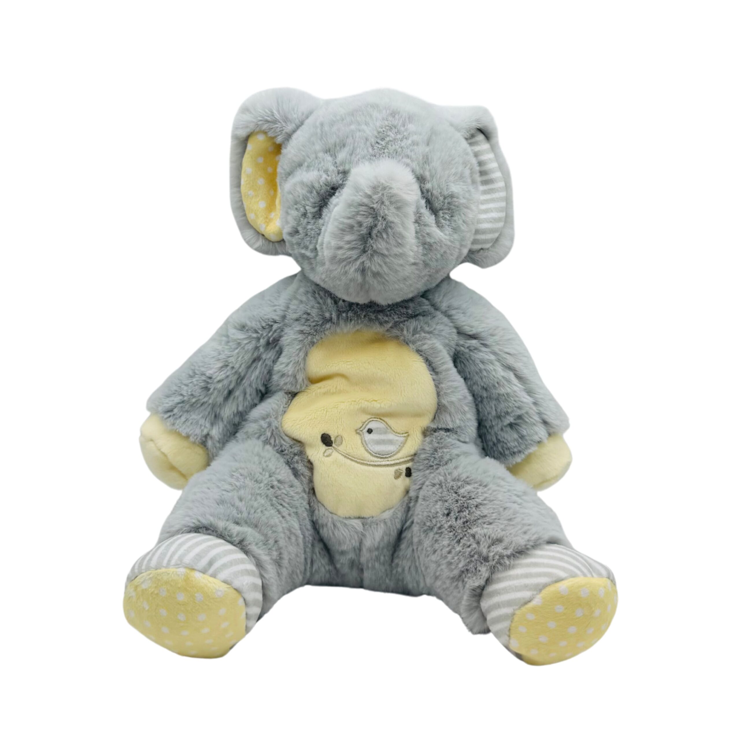 Wrinkles and rolls of luxuriously soft fabrics make Joey the Sweet Little Gray Elephant Plumpie positively irresistible! We’ve paired cuddly gray plush fur with pastel polka dots and stripes to create a sophisticated soft friend for Baby. This little Elephant features baby-safe embroidered eyes and decorative ribbon accents atop his head to engage Baby’s senses. The understuffed body of this playful pachyderm gives him the endearing slouch our ultra huggable Plumpie stuffed animals are known for. So come and give Joey a squeeze; we’re sure you’ll love him and Baby will too!