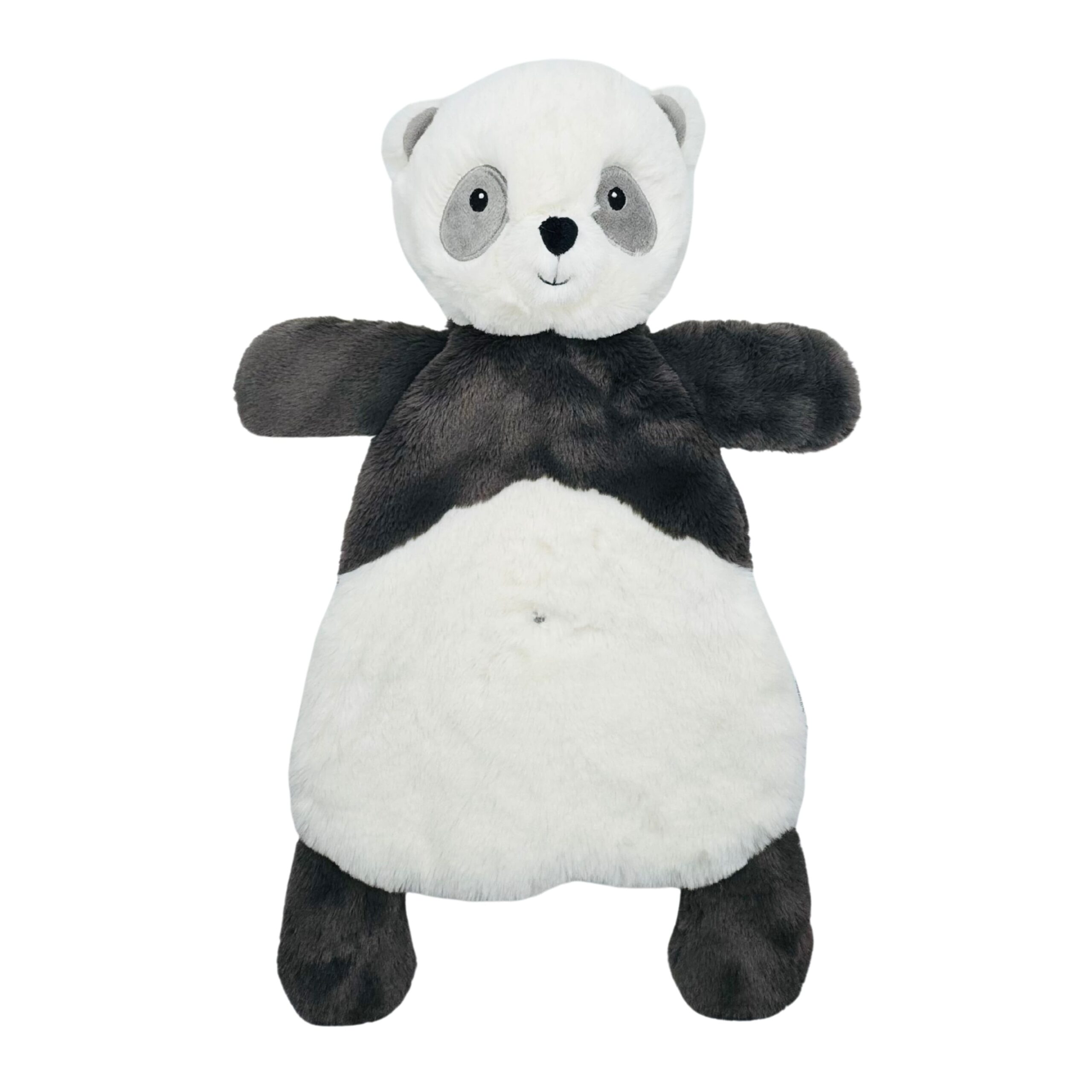Come and join our cuddly plush Panda Sshlumpie for a romp and a snuggle! This friendly faced bear cub loves rolling around on the floor or cozying up for some sweet dreams. And as a versatile Sshlumpie soft toy, he’s equally suited to do both! Understuffed and ultra soft, our Sshlumpies can be laid out flat for Baby to lie on or squished up for cuddling. Their lightweight nature also makes them perfect for little people to carry around and love. Downy soft plush materials and embroidered facial features make this playful Panda a safe and endearing friend. The combination of creamy whites and relaxing grays gives our Happy Little Panda character a sophisticated appearance.