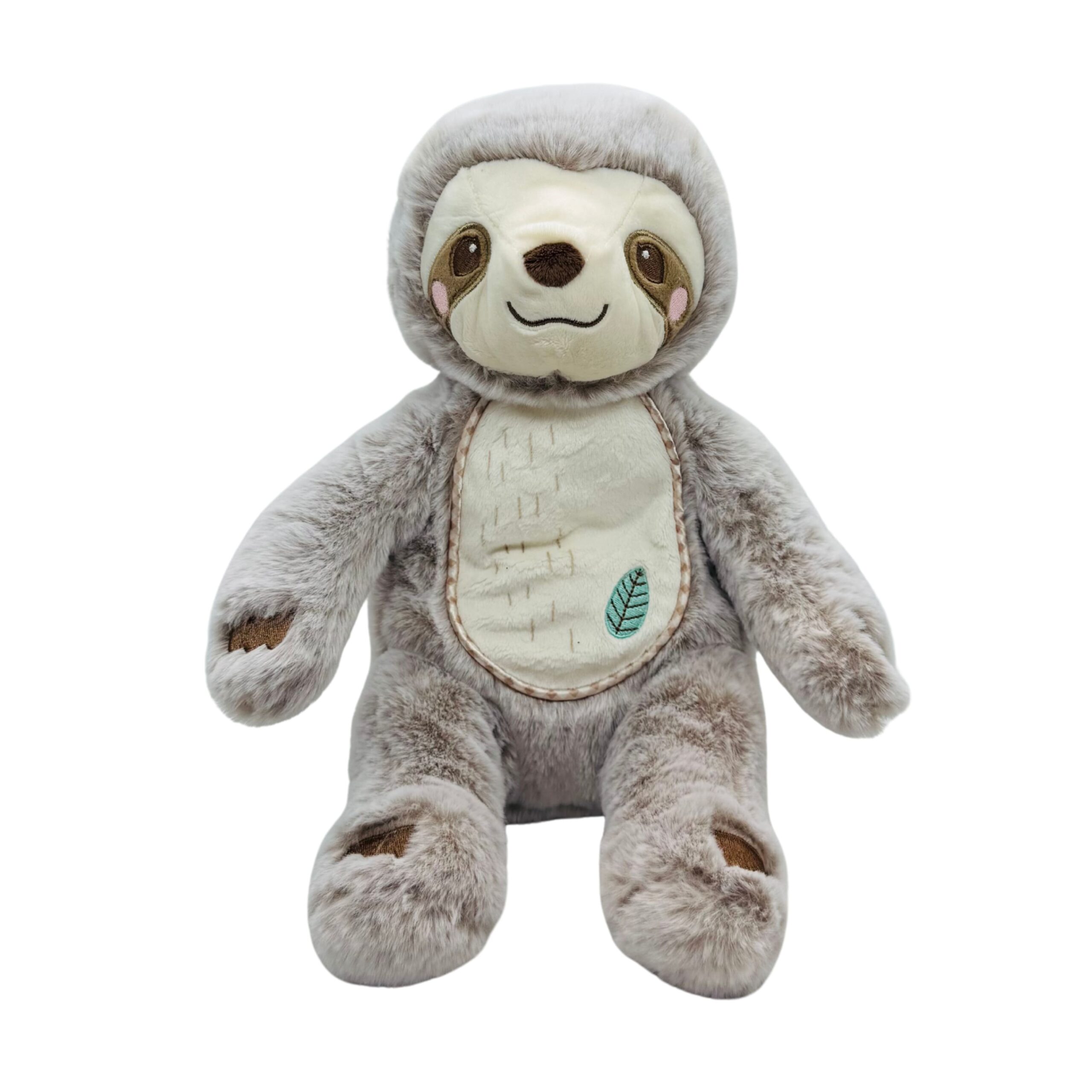 Stanley the plush Sloth Plumpie is ultra soft and delightfully understuffed. When Baby wants to kick back and simply “hang around” Stanley is the perfect snuggly companion! The friendly Sloth character is made with the finest quality fabrics, hand selected for the ultimate in cuddling pleasure. Baby-safe embroidered details adorn his face and paws, and a little embroidered leaf can be found on his belly. Loaded with charm, Stanley the happy Sloth Plumpie stuffed animal is a baby’s best friend